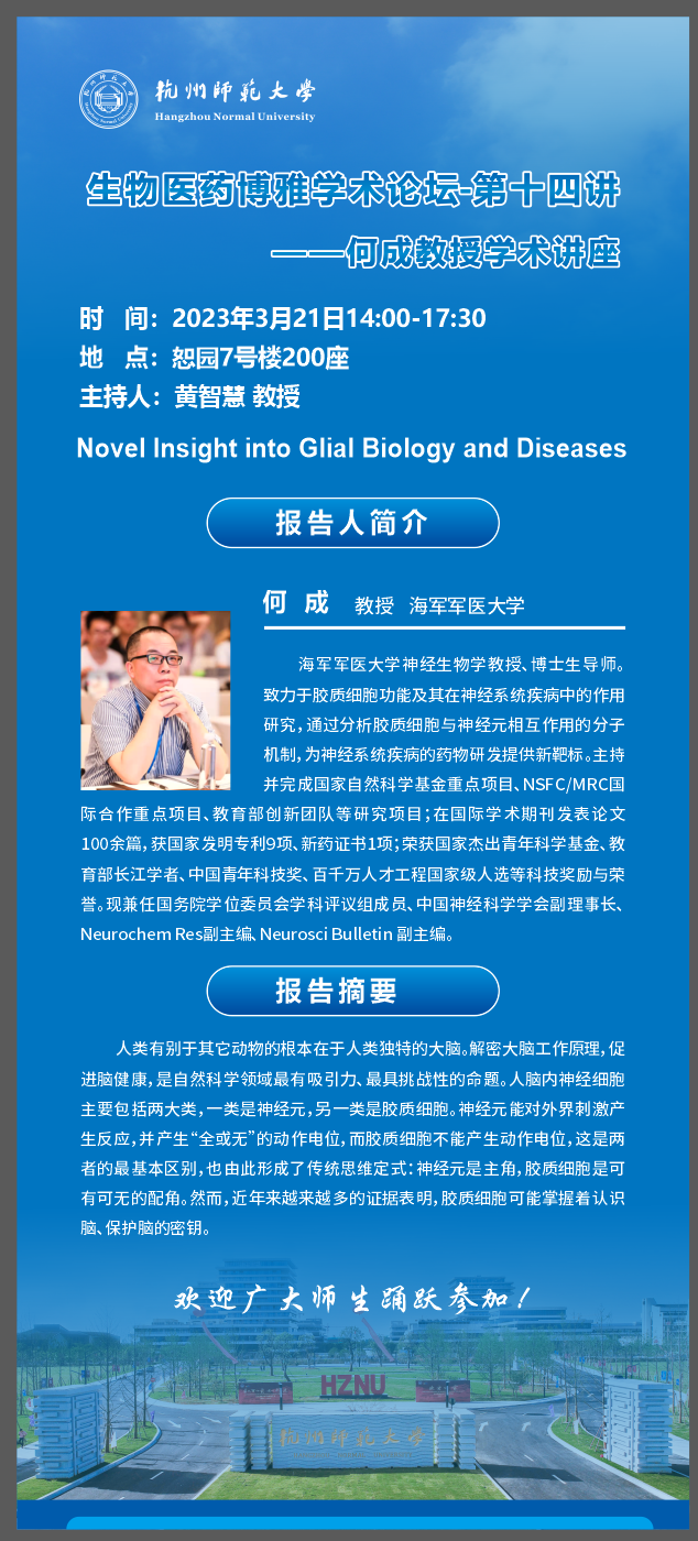 讲座主题:Novel Insight into Glial Biology and Diseases