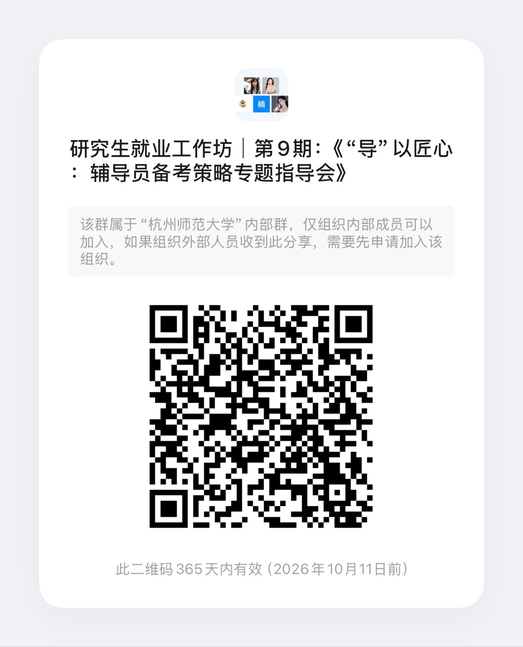 为适应高等教育蓬勃发展下高校辅导员队伍建设的新要求,帮助有志于此的同学明晰职业特点、把握选拔标准、优化备考策略,研究生院(研工部)特决定举办“研究生就业工作坊”第9期——辅导员备考策略专题指导会。现将第9期课程的相关事宜予以通知: