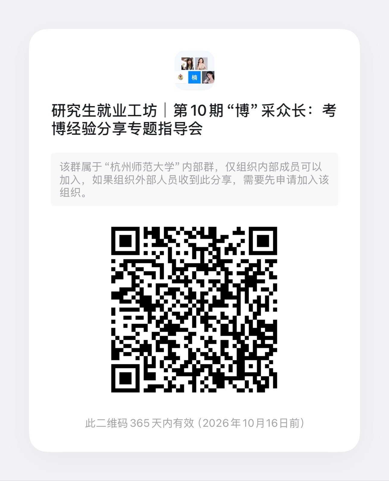 为助力有考博意向的同学了解考博流程、明晰备考要点、掌握申请技巧,研究生院(研工部)特举办“研究生就业工作坊”第10期——考博经验分享专题指导会。现将第10期课程的相关事宜予以通知: