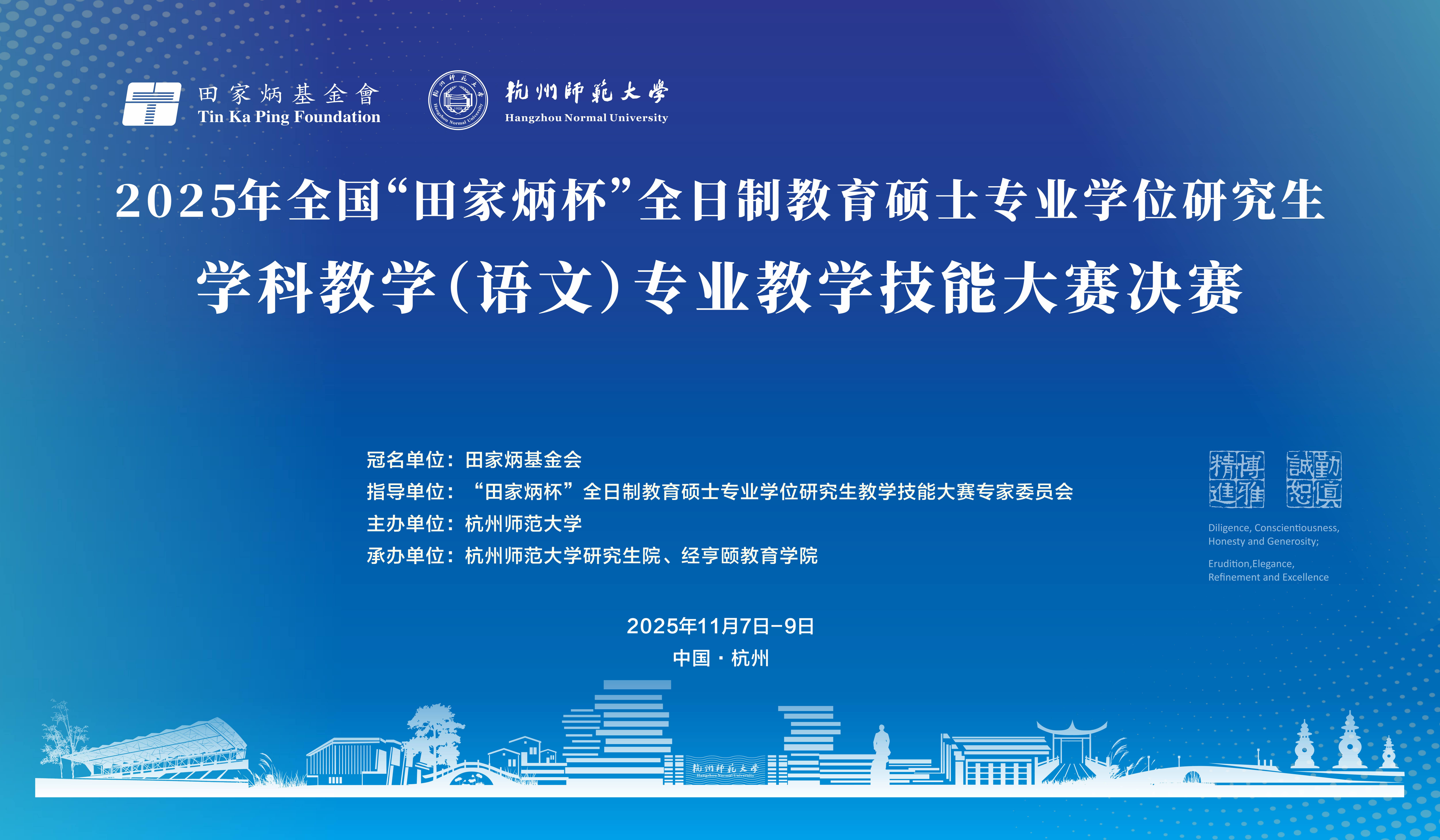 11月7日至9日,我校举办了2025年“田家炳杯”全日制教育硕士专业学位研究生学科教学(语文)专业教学技能大赛决赛暨素养教育时代语文教学改革研讨会,研究生院、经亨颐教育学院承办。