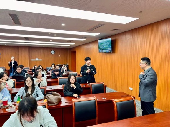 在交流互动环节中,现场师生围绕报告内容踊跃提问。药学院学术副院长陈大竞教授结合课题组研究方向与史教授就壳聚糖等几丁质材料固定化酶的创新方案进行了探讨。史教授进一步建议,可以探索“酶促活化-界面自组装”的协同策略,为高性能生物基传感器的开发开辟新路径。