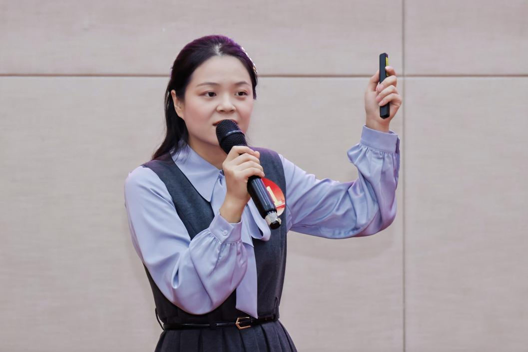 赛后,评委代表郑虹老师对选手表现进行专业点评。她首先肯定了选手们自信的风采与精心的设计——语言流畅、仪态自然,各学科特色鲜明,还巧妙融入了AI应用与情境创设等当下教学热点;同时也提出了“精心有余、灵活不足”的提升方向,建议选手在教学设计中融入对课堂意外情况的应对方案,进一步凸显个人特色。最后,她分享了“好的说课应是思想的锐度、逻辑的密度、表达的温度三者融合”的观点,并引用“the middle teacher tells, good teacher explains, superior teacher demonstrate, great teacher inspires”与在场学子共勉。