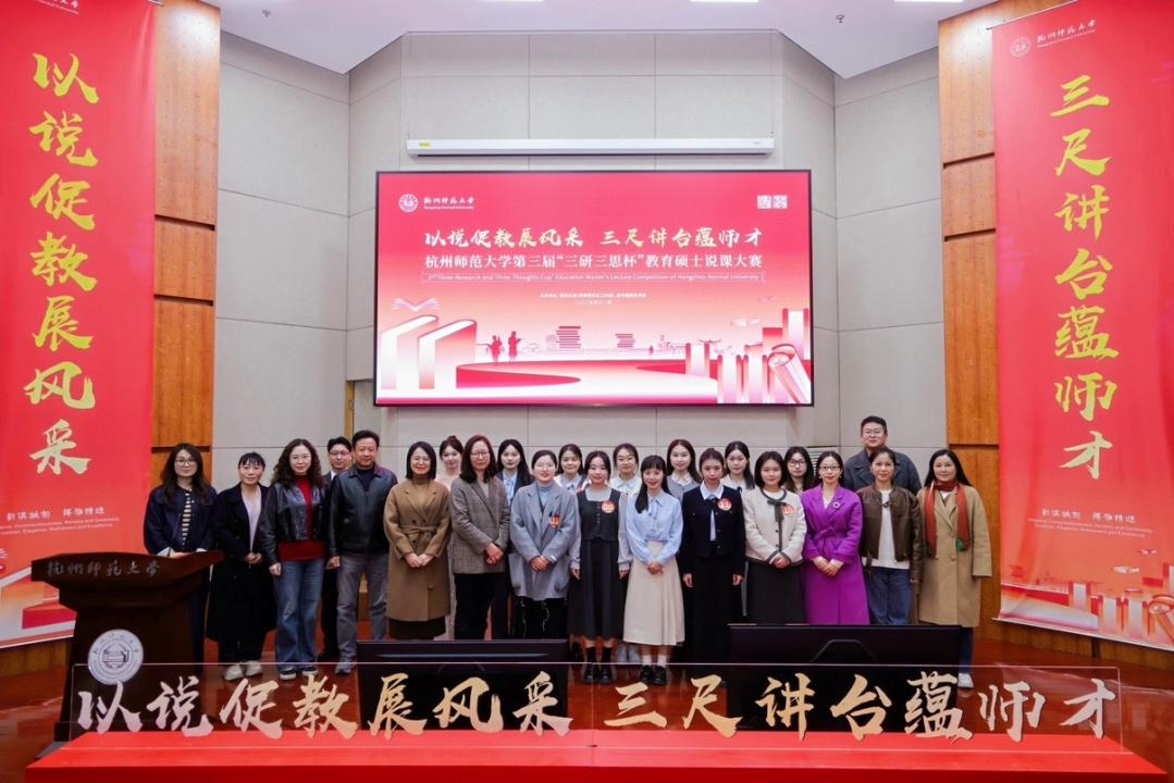 11月26日下午,杭州师范大学第三届“三研三思杯”教育硕士说课大赛决赛在恕园7号楼200座报告厅顺利举办。本次大赛由研究生院(党委研究生工作部)联合经亨颐教育学院共同举办。发展联络办公室副主任、校友联络办公室副主任薛少聪、研究生院副院长、党委研究生工作部副部长高飞、经亨颐教育学院党委副书记沈嫣共同莅临现场,人文学院陈新民老师、音乐学院马薇老师和经亨颐教育学院郑虹、黄金丽、岳增成老师担任评委。