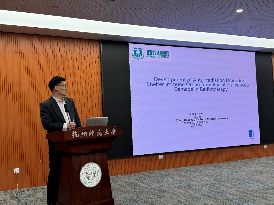 2025年12月8日上午,中国人民解放军第四军医大学第一附属医院(西京医院)研究员、西京医院A类高层次人才、陕西省中医药科研创新人才黄世高教授应邀到我院博雅学术讲座,带来一场题为《Development of Anti-Irradiation Drugs for Sheltering Immune Organs from Radiation-Induced Damage in Radiotherapy》的精彩学术报告。